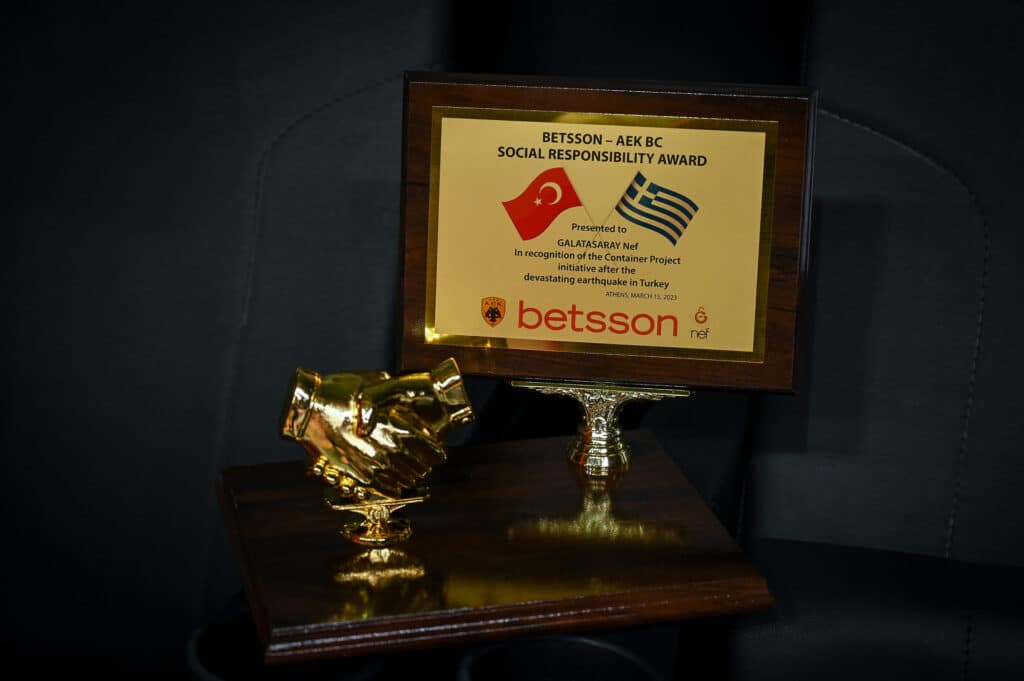 In relation to this, Betsson and AEK BC gave two thousand free tickets for the match between BCL and AEK – Galatasaray, to schools, institutions and organisations such as Hellenic Red Cross and EMAK. Both organisations were awarded by both representatives of Betsson and AEK BC for their support in Turkey.