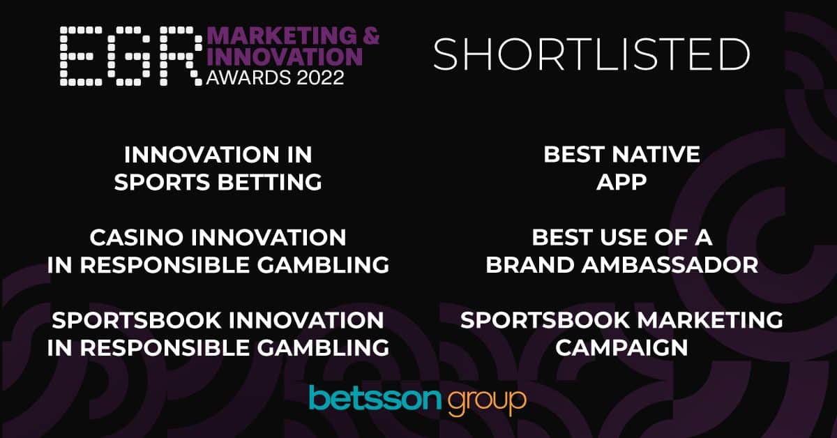 Betsson Group announces that it has been shortlisted in six categories at the upcoming EGR Marketing & Innovation Awards.
