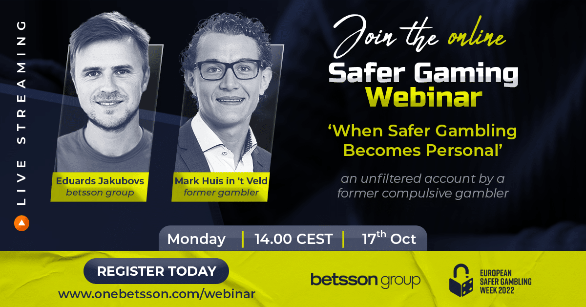 Join the ‘When Safer Gambling Becomes Personal’ one-hour live webinar during which Mark Huis in ‘t Veld, a former compulsive gambler, will narrate his personal story to Eduards Jakubovs, Head of Responsible Gaming at Betsson Group. Mark will elaborate on how he managed to overcome his addiction and the way he could be influenced to change his problematic behaviour.