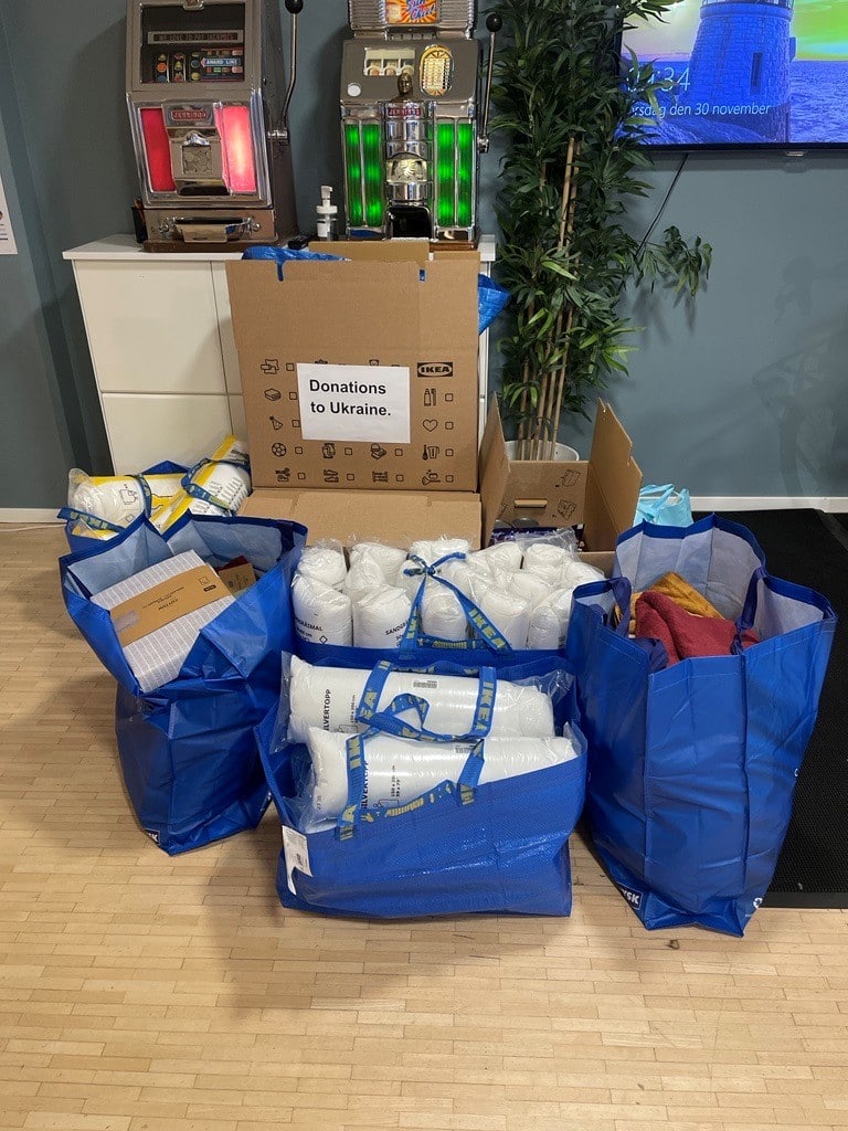 Simultaneously, our compassionate Betssonites at our Stockholm office took it upon themselves to extend a helping hand to the people of Ukraine. In addition to the monetary contribution for the ambulance, our team gathered an assortment of essential items, including food, clothing, bed linens, pillows, towels, mattresses, duvet covers, batteries, power banks, shampoo, soap, chocolate bars, baby food, baby clothes, and various other necessities.