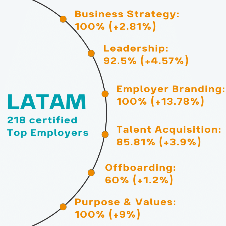 When looking specifically at the LATAM region, we can see 218 certified Top Employers and one more topic in which Betsson Colombia comparatively excels; Offboarding: